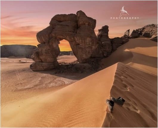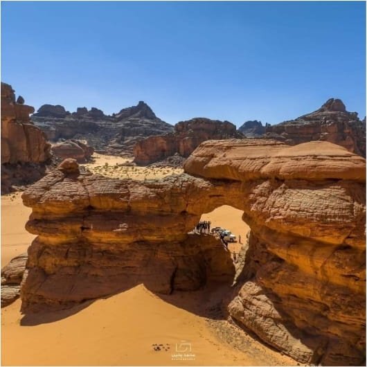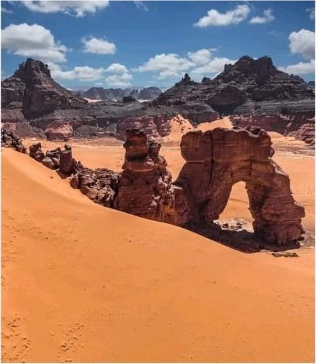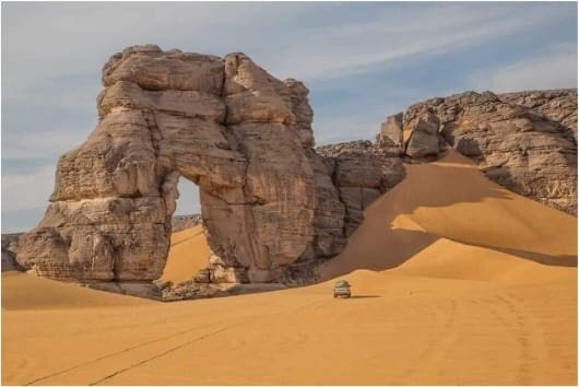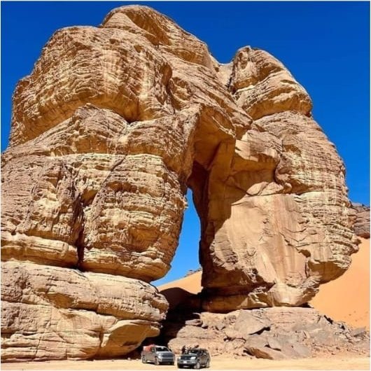 Rounded sandstone towers, wind-carved arches and broad dunes create striking vistas ideal for photography, exploration and quiet reflection. The contrast of red rock and golden sand is unforgettable