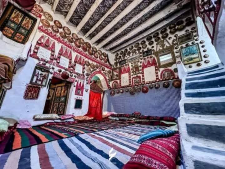 The medina was historically divided into distinct neighborhoods (mahallas) with shared courtyards and communal spaces; the spatial layout reflects social customs, family privacy and collective life adapted to an oasis environment.