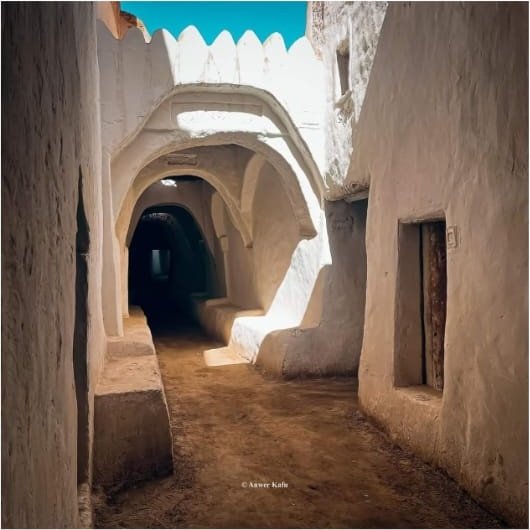 The town’s narrow, covered streets, multi-level houses and roof terraces were designed to create shade, channel breezes and separate household activities by leveling an elegant, practical response to extreme desert heat.