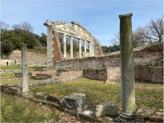 Visible Greek, Roman and Byzantine layers. Walking the site you can see buildings and remains from several periods, including the basilica with its columns and the seaside theatre. These layers tell the story of a place used for trade, religion and daily life for more than a thousand years.